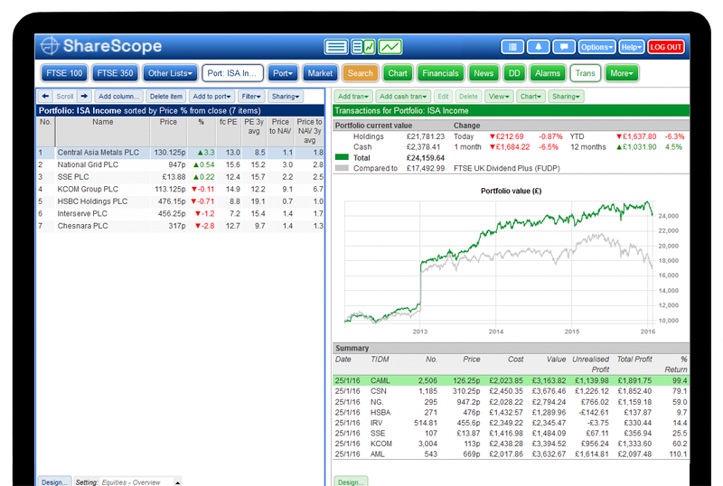 Now with customisable multi-window layouts, ShareScope enables you to create data-rich workspaces for your investment research, portfolio management, stock screening and trading. Click here to see an example.