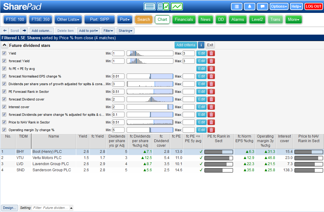 ShareScope's ability to filter the stock market for shares that meet specific criteria is second to none. Not only that, you can also filter funds, investment trusts and ETFs to find those with the best performance and the lowest fee.