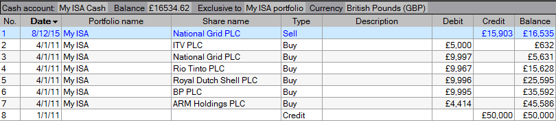 In the cash account you can see the sale has led to a cash balance of £16,535, which could be held as cash or reinvested elsewhere.