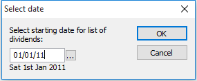 At the bottom of the dialog window you can see there is a Select date button. You can use this to set a date prior to your first purchase and then ShareScope will check for any dividends that have not been added to ALL of your portfolios since that date.