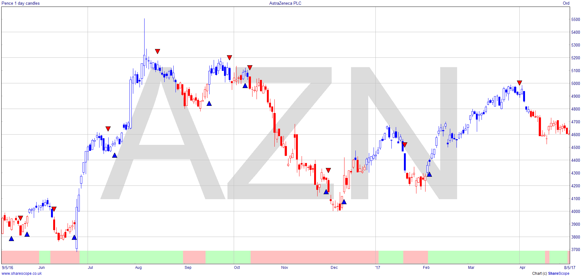 ShareScript Studies are added to the main chart and are similar to ShareScript Indicators. However, studies have a greater amount of flexibility and enable us to draw complex shapes and text on the chart in way that is not possible with an indicator script.